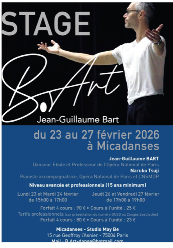 | Grand stage Micadanses avec JG BART du 23 au 27 février 2026 |